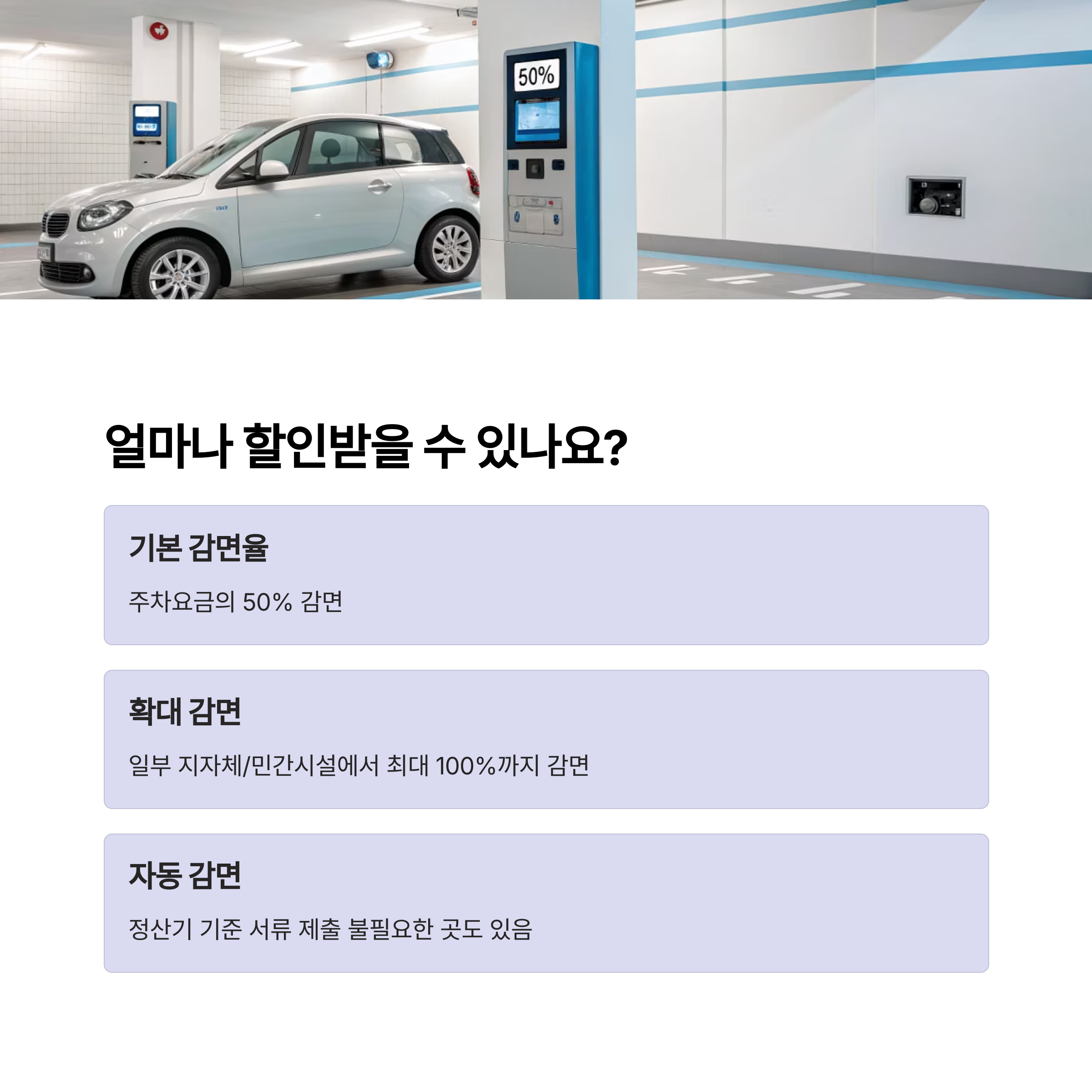 | 감면율 | 주차요금의 50% | 지방공공/민간 기준 기본 |