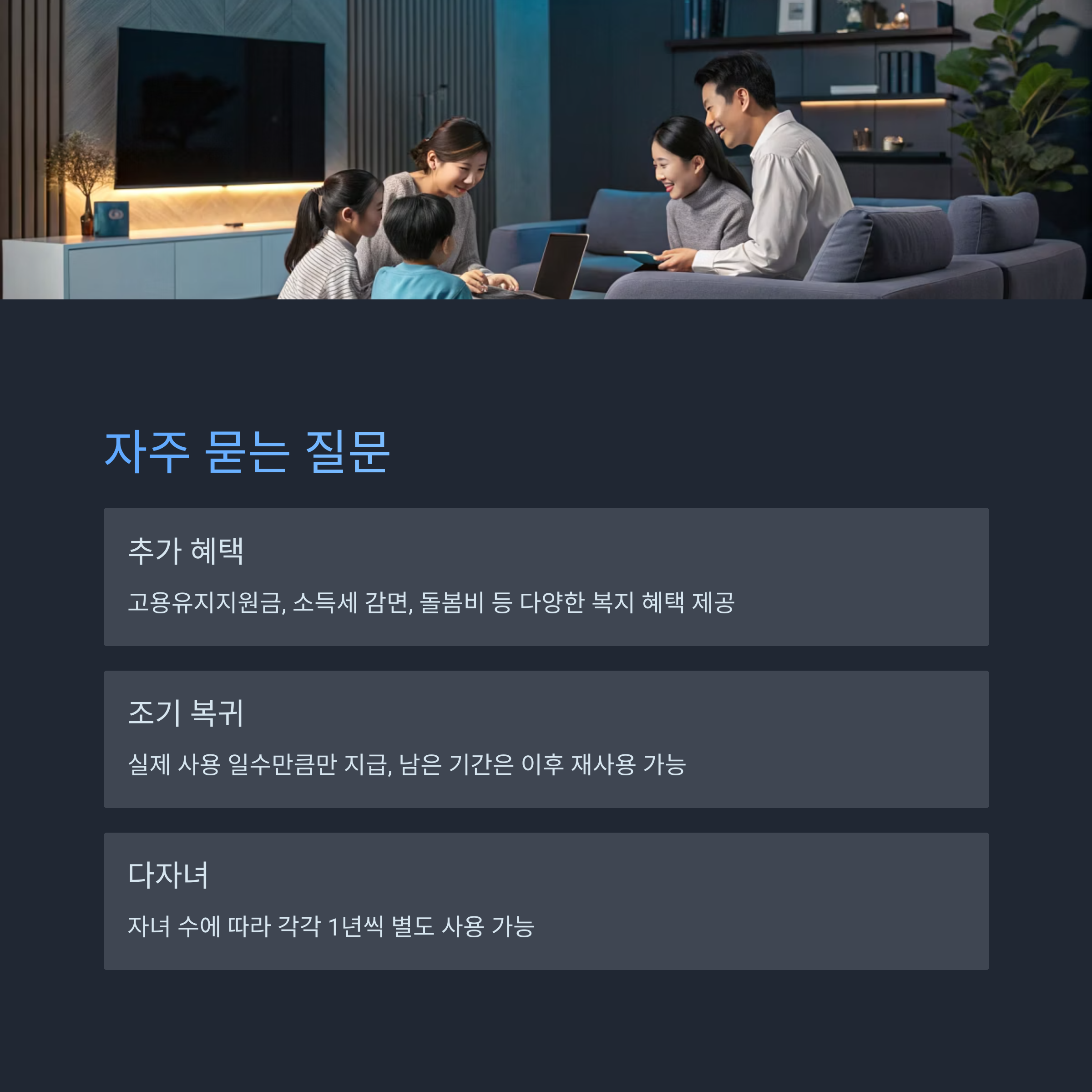 | 부모 동시형 | 부부 모두 신청 시 | 동시에 육아휴직 가능, 각 1년 |