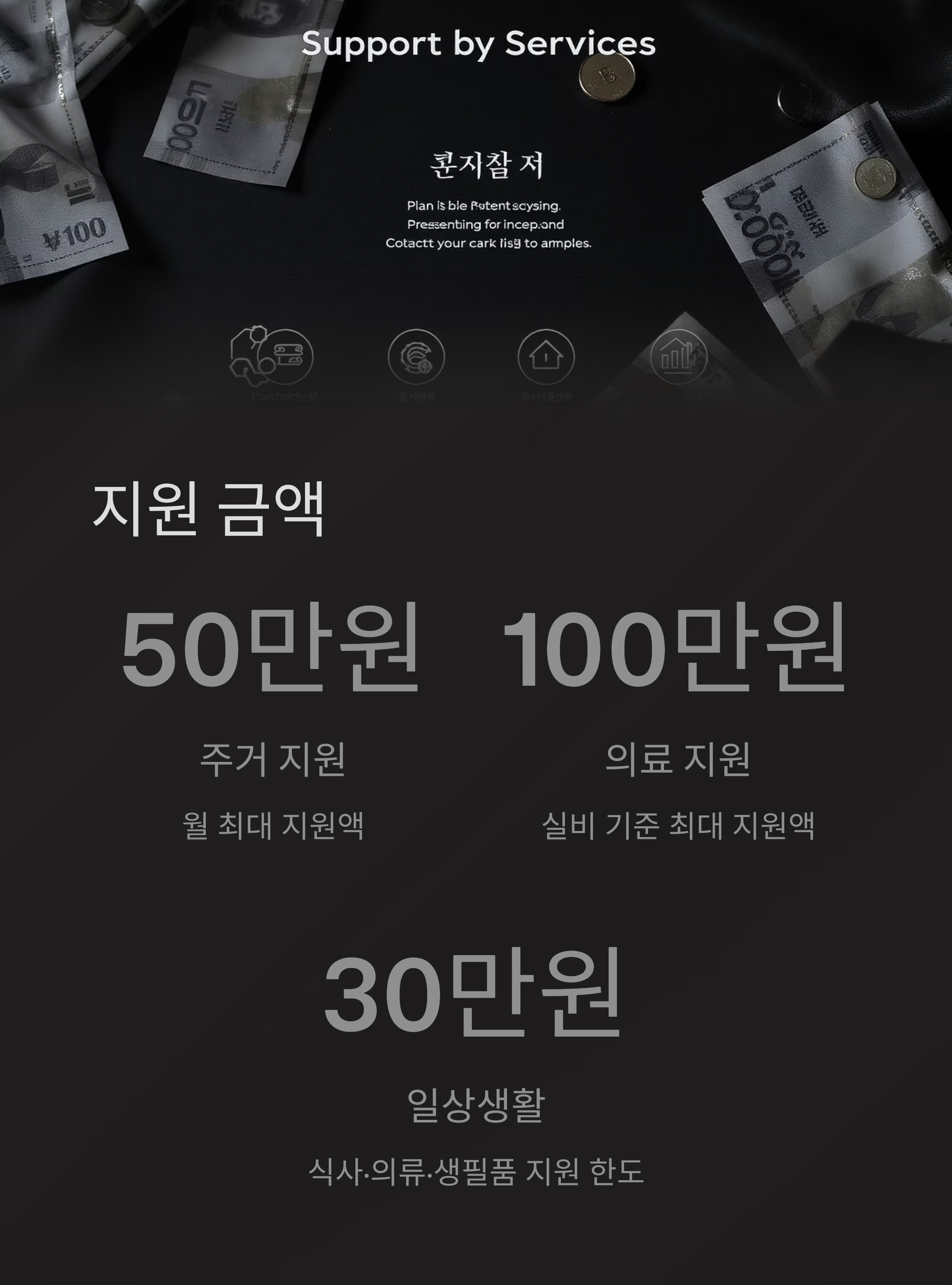 | 교육/직업 | 월 30만~70만원 | 교육·훈련비 현금 지급 |