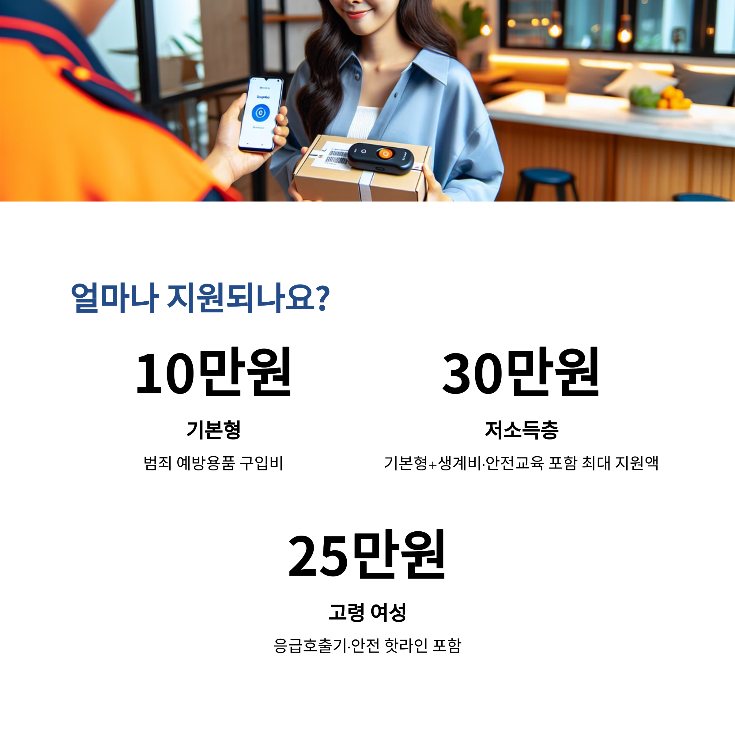 | 기본형 | 만 19세 이상 전 여성 | 가정용 비상벨, 범죄 예방용품 키트 |