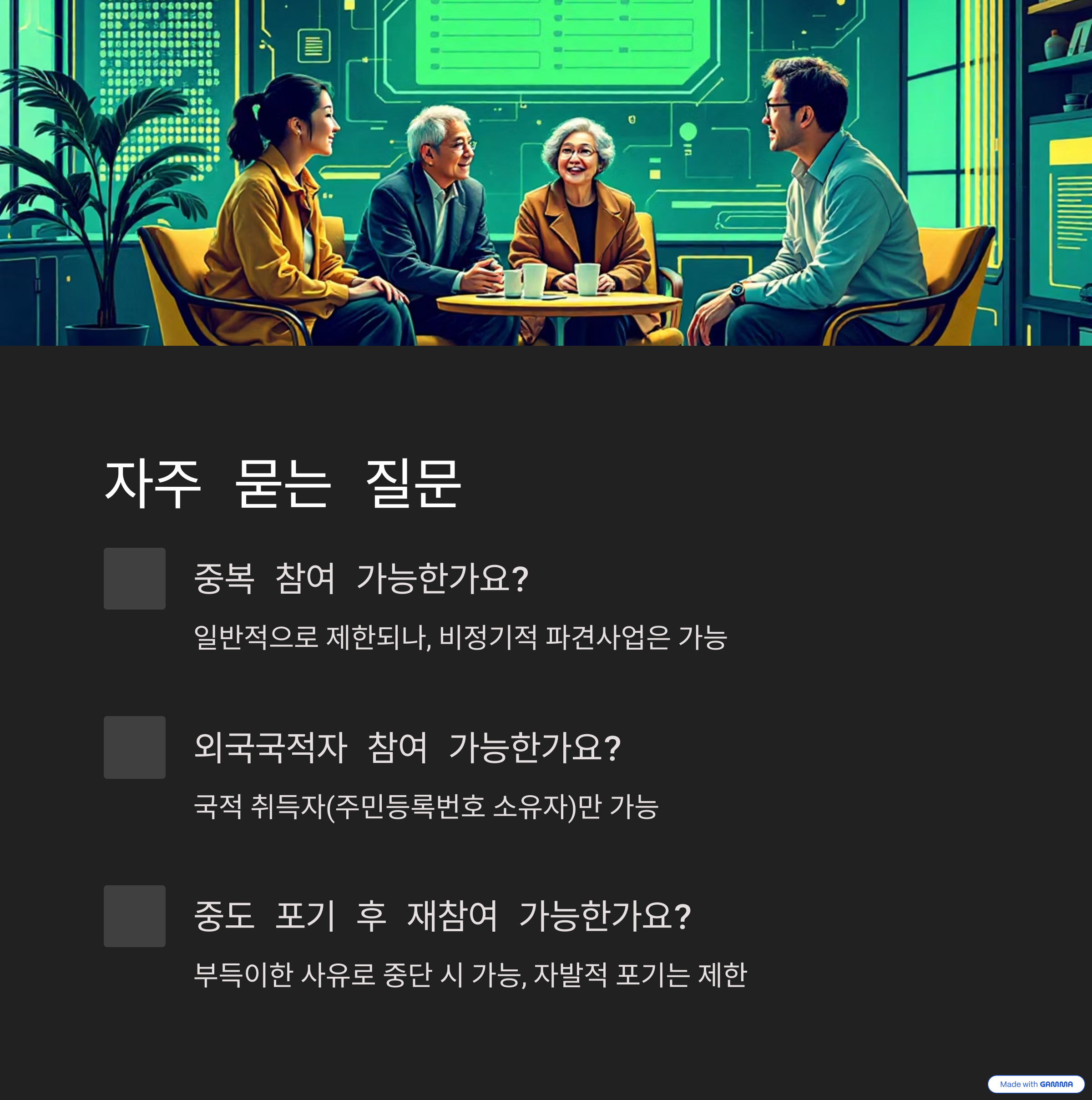 Q1. 노인일자리사업에 중복 참여가 가능한가요?