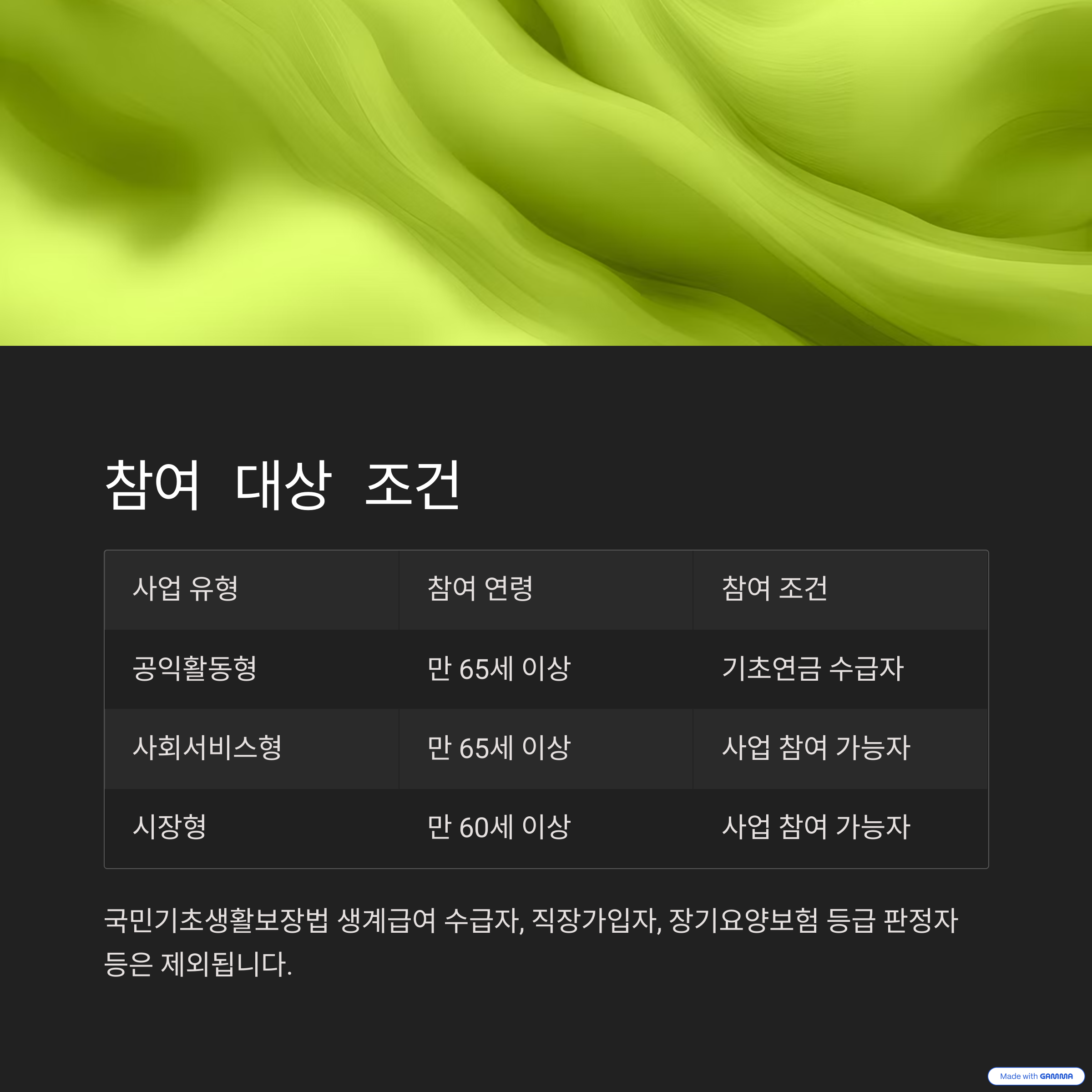 | 사회서비스형 | 만 65세 이상 | 사업 참여 가능자 |